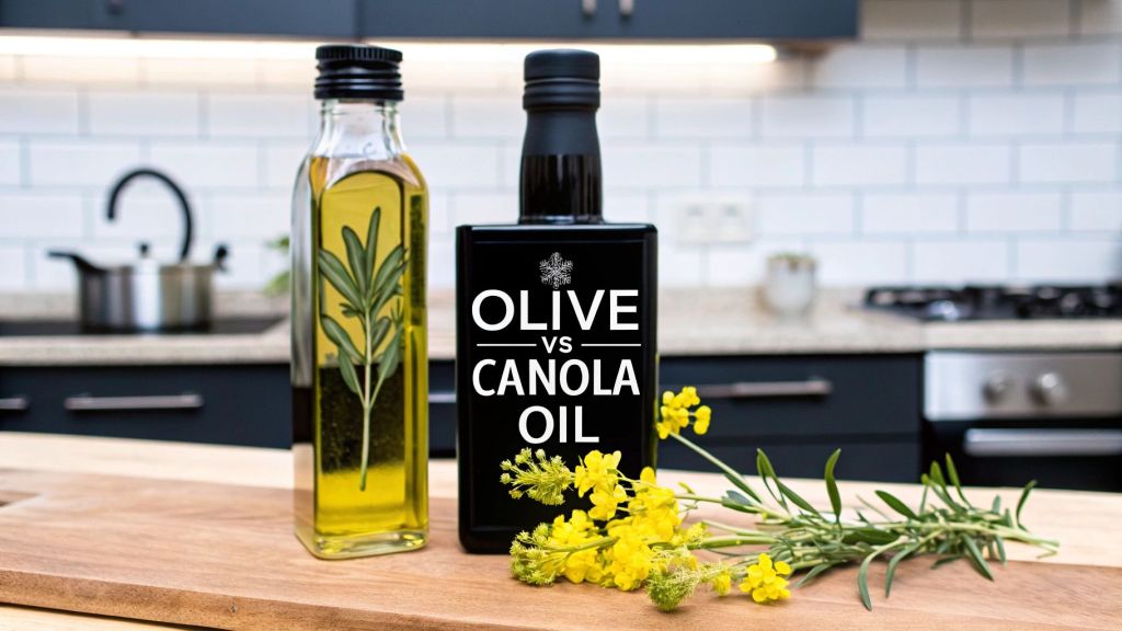 When you stand in the cooking oil aisle, you're not just choosing a fat—you're making a choice for your health. The labels can be a dizzying storm of buzzwords, but what truly separates olive oil from canola oil is what’s inside the bottle. Let's cut through the noise and get straight to the facts.