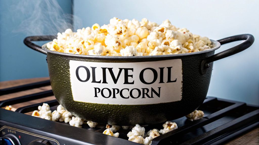 So, choosing a refined olive oil for the actual popping isn't a compromise; it’s a smart, strategic move. It lets you get the oil hot enough for a perfect pop without filling your kitchen with smoke or ruining the flavor. You get a clean, crisp batch of popcorn that becomes the perfect blank canvas for a final, flavorful drizzle of the good stuff.