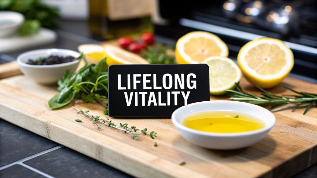 This isn’t just a hopeful theory; the scientific evidence is overwhelming. A groundbreaking 2022 meta-analysis, which examined data from over a million people, discovered that those who consumed the most olive oil slashed their risk of cardiovascular disease by an astonishing 15%. That same group also had a 17% lower risk of dying from any cause, proving just how foundational this single ingredient can be for a long, vibrant life. You can explore the findings of this monumental study on frontiersin.org.
