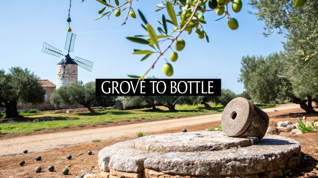 To truly understand what makes an olive oil magnificent, you must see the process as a series of distinct, unskippable stages. This quick overview reveals the core journey from sun-dappled tree to cool, dark bottle.