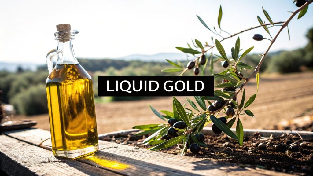 Think of this guide as your personal passport to the world of Spanish olive oil. We’ll explore the distinct personalities of oils from different regions, demystify the most important olive varieties, and teach you how to read a label like a seasoned expert. We'll also touch on the fascinating history that shapes every bottle; you can dive deeper into the ancient roots of this culinary staple and learn more about the olive oil origin that has influenced cooking for centuries.